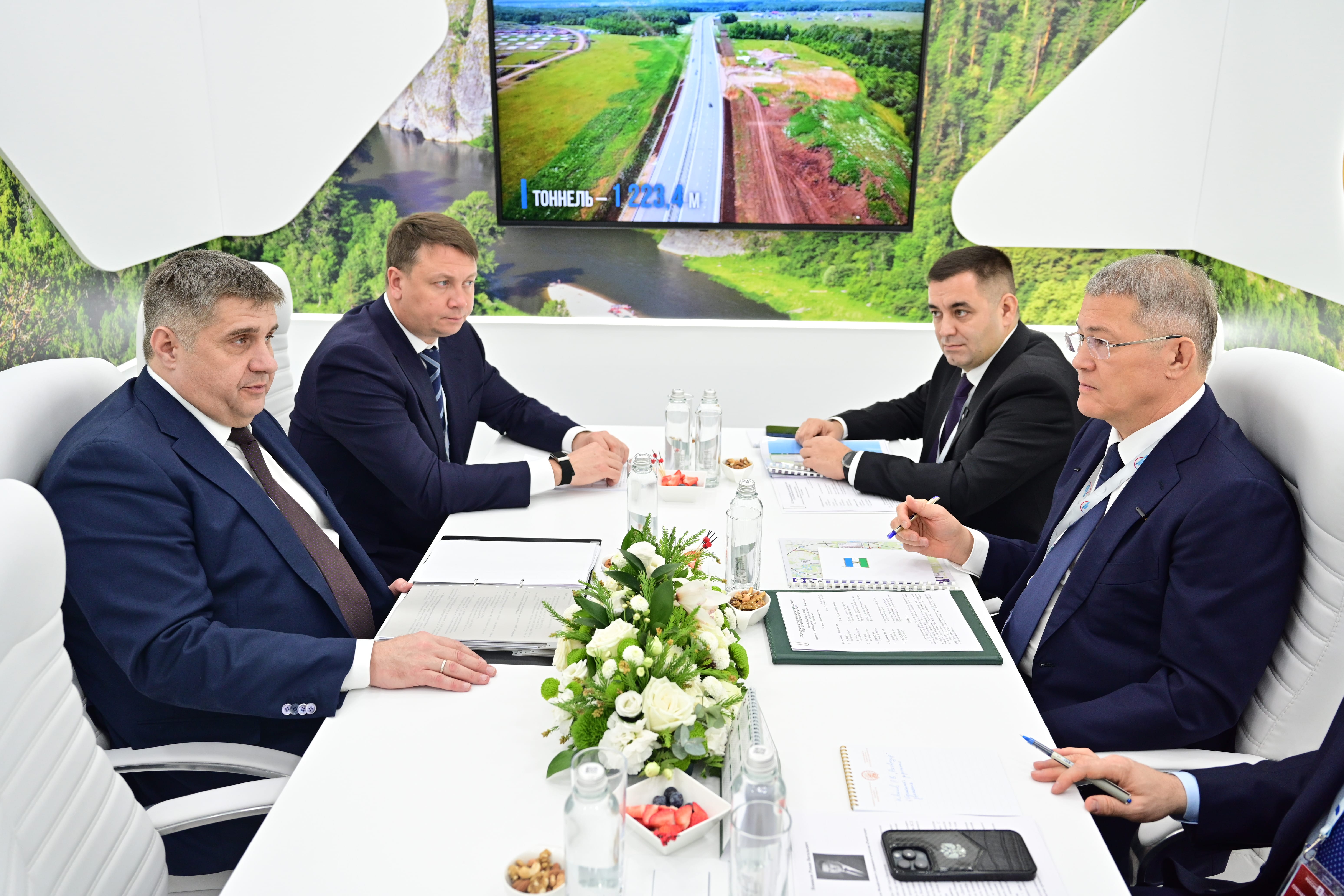 В Москве в Гостином Дворе прошла встреча руководителя Федерального дорожного агентства Романа Новикова и главы Республики Башкортостан Радия Хабирова. На повестке – перспективы перевода участков федеральных трасс субъекта в четырехполосное и шестиполосное исполнение, программа дорожных работ на федеральной и местной сети автомобильных дорог по нацпроекту «Инфраструктура для жизни».